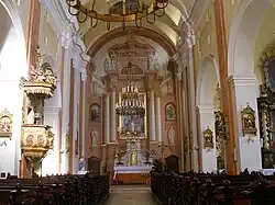 Barokní lavice, které se používají dodnes, byly v kostele instalovány v polovině 18. století. Jejich točité pilastry jsou zdobeny rostlinnými motivy, vroubkovaným ornamentem a sochami lvů.[3]