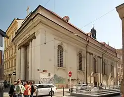 ![]() Kostel sv. Kříže z ulice Na Příkopě | |
