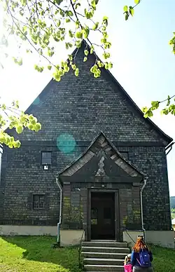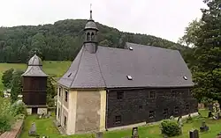 Roubený raně barokní kostel v horské údolní vesnici pochází z let 1683–1686,[4] kdy nahradil původní luteránský kostelík ze 16. století. Roubenou stavbu vystavěl Michl Schnöbel[2] (Schnoebel). Ta byla upravována v letech 1760–1761[4] a roku 1781 doplněna o zděnou sakristii na jih od presbytáře (stavitel J. J. Kunze). Od roku 1893 kryje vnějšek stěn břidlicový obklad, v 90. letech 20. století byl celý areál opraven.