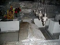 Hrobka svatého Lazara se nachází ve spodní místnosti, do které vede vstup z interiéru kostela.