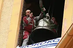 Za Kokořovců byl v roce 1658 pro farní kostel odlit také nejstarší a největší známý zvon. Jeho autorem byl proslulý klatovský zvonař Štěpán Pricquey. Zvon vážil 210 kg a byl opatřen několika nápisy ve třech jazycích: „A fulgure et tempestatelibera nos Domine Jesu Christe. Anno Diu 1658. Lidmila Margaretha Przichowska, urozená z Kokorzowa. Zu der Ehre Gottes, Leütet man mich die Lebenigen zum Begett beruffe ich, die Toten beweine ich. Stephan Pričovey von Glatav gone mich 1658.“ Zajímavostí je, že nejstarší dnes existující zvony Pricqueyových jsou datovány až do první poloviny šedesátých let 17. století. Celkem je dnes známo na šedesát zvonů od této firmy. K pricqueyovskému zvonu přibyl v roce 1739 nový zvon. Vznikl pravděpodobně přelitím středověkého zvonu zasvěceného sv. Martinovi. Také nový zvon byl zasvěcen sv. Martinovi, měl průměr 80 cm, vážil 313 kg a odlila jej slavná plzeňská zvonařská firma Pernerových. Zvon Martin byl požehnán proboštem chotěšovského kláštera Kryštofem Schmidlem. Na jedné straně zvonu se nacházel reliéf s vyobrazením svatého Cyrila a Metoděje a pod ním nápis: „Chválu Bohu vzdávám, lid, kněžstvo svolávám, pomřelých lituji, mračna zapuzuji, svátky zvelebuji.“ Na druhé straně byl nápis: „Auctore: P. Josepho Fischer, P. T. Curato Chvalenicensi, Patria Plsnensin et Munificentium Piorum Parochianorum et Benefactorum Anno 1739“. Nahoře byl na zvonu nápis: „Sit Nomesi Domini Benedictum Jo. Perner gos mich in Pilsen“. Oba velké zvony byly spolu s dvěma menšími přeneseny v roce 1752 do věží nového barokního chrámu svatého Martina. Všechny vzaly za své v době první světové války.[6]
