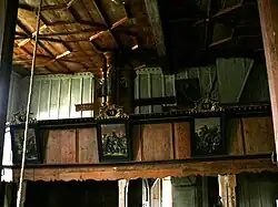 - lidové předměty – dvoukřídlá skříň pod kruchtou, věšáky na kruchtě atp.