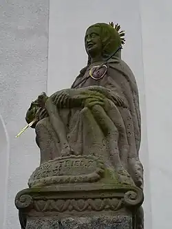 U východního závěru kostela stojí sousoší Piety. Jde o rustikální sousoší na sloupu, datované do roku 1663.