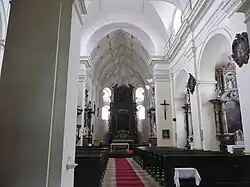 Později bylo kněžiště zastřešeno složitou hvězdicovou klenbou, v roce 1624 byl kostel předán do správy jezuitskému řádu, jenž nechal kostel přestavět do nynější barokní podoby a v přilehlých budovách jezuitské koleje zavedl výuku.