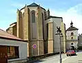 oblasti, převládá výrazná domácí tradice s prostorově sjednocenými a poměrně krátkými trojlodními síněmi. Chrámový oltář je orientovaný na východ. Na počátku 16. století došlo k dostavbě kostela, která sice nedosahuje kvality starších částí, přesto však představuje vysokou úroveň vladislavské gotiky. Ke kostelu přiléhá barokní budova děkanství z roku 1786 a zvonice s bránou, kterou ve středověku procházela tzv. Polská cesta[4].