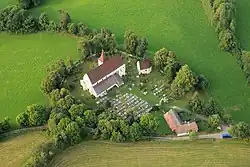 Kostel sv. Mikuláše, pohled z cesty do osady Tuškov -