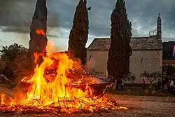 Každý rok v předvečer svátku svatého Mikuláše je před kostelem obřadně spálen starý dřevěný člun jako oběť za spásu námořníků plavících se po mořích.[1]