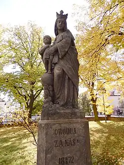 - kamenné sousoší Panny Marie s dítětem Ježíšem, dílo sochaře Parmy s tesaným letopočtem 1872 na soklu, stávalo „na cestě ku Praze“ nedaleko kaple Panny Marie Andělské.
