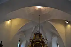 Při značné šíři lodi zaujme podprůměrná výška původní stavby, necelých 5 metrů.
