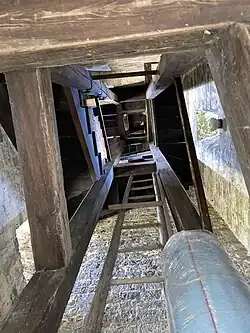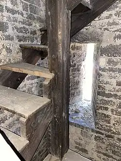 Nejvyšší část věže, rekonstruovaná Machem, má sdružená okna, která tvoří souvislý pás zdiva, oddělený od kvádříkové partie nad ním. Tyto kvádříky by měly být replikou původních.