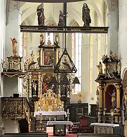 V presbytáři byly v 17. století zřízeny dvě speciální lavice pro městskou radu, která se skládala z osmnácti radních. Varhany na kůru zhotovil roku 1774 český varhanář Franz Prokop Noly (1744-1814).[3][4]