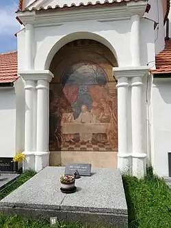 - ↑ Historie maleb v arkádových kapličkách hřbitovní zdi začíná roku 1841 [online]. [cit. 2021-02-09]. Dostupné v archivu pořízeném dne 2021-02-10.