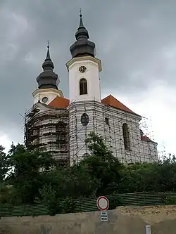 Jedná se o dokonale symetrickou barokní centrální stavbu o půdorysu řeckého kříže (přibližně 25 × 20 m). Kostel má ústřední čtvercový prostor a apsidy na hlavní ose. Na diagonálách chrámové lodi se nacházejí čtyři osmiboké kaple. Zevně je stavba zhruba čtyřboká. Má dvě věže téhož půdorysu s vysokými báněmi a konvexní rizalit v západním průčelí. Nad ústředním prostorem je monumentální placková klenba s freskovou výzdobou od Franze Müllera z roku 1750.