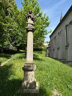 V těsném sousedství kostela stojí sloup se sochou sv. Jana Nepomuckého z roku 1735, barokní památka, která je dnes nejstarší dochovanou sochařskou památkou v Libušíně.