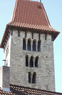 Střecha věže spočívá na třiceti dvou vyřezávaných dubových krakorcích. Dříve se tradičně pokrývala šindelem, ale při rekonstrukci v roce 1937 byly věž i kostel pokryty prejzovou krytinou.[1]