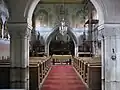 Okolo kostela stojí již dříve zrušený hřbitov.