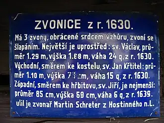 - ↑ KUČA, Karel. České, moravské a slezské zvonice. Praha: Libri, 2001. S. 257.