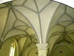 V závěru presbytáře je renesanční epitaf Anny Salhausenové z roku 1587. Epitaf je neúplný, s reliéfem klečící ženské postavy s dětmi a s biblickým reliéfem v nástavci.