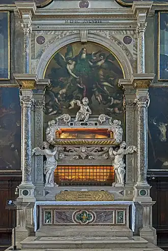 - Hlavní oltář byl dokončen po roce 1483 a údajně jsou do něj zasazeny kameny z Božího hrobu v Jeruzalémě; obrazy kolem oltáře jsou dílem Palma Giovane a Girolama Pellegriniho.