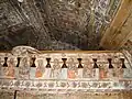 Všechny vnitřní stěny jsou vyzdobené freskami v jasných barvách, jejichž autory jsou Nicholas Mann a Radu Munteanu z vesnice Ungureni, kteří vytvořili nástěnné malby také pro kostel v Deseşti a další v oblasti Lăpuş.[3] Jednotlivé výjevy jsou napsány cyrilicí. V roce 1834 byly fresky částečně obnoveny, strop a loď byly přemalovány neznámým umělcem.[2]