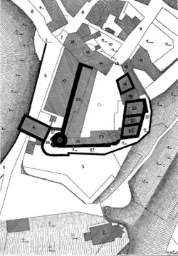 Půdorys hradu byl pětiboký. Chránily ho nejméně čtyři věže. Kromě stojící bateriové věže se dochovala malá část zdiva okrouhlé věže v jihovýchodním nároží. V severozápadním nároží se částečně dochovala věž hranolová. Obytné stavby byly strženy a nahrazeny pivovarskými novostavbami, ale na východní straně stála čtverhranná obytná věž a trojprostorový palác. Dlouhá, částečně dochovaná budova stála podél hradby v severozápadní části. Hradní jádro na všech stranách obíhal parkán.[3]