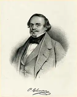 P.Claussen, vlastník prvního patentu na výrobu a spřádání kotonizovaných vláken (litografie z roku 1851)