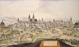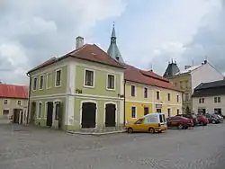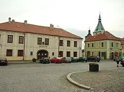 ![]() Náměstí s radnicí, kostelem a zvonicí | |
