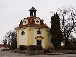 Nevelká kaple Panny Marie Pomocné stojí v prostoru někdejšího středověkého popraviště „Na Stínadlech“. Byla postavena 1727 snad Janem B. Santinim na památku pěti mnichů, upálených zde roku 1421 husity. Je vynikajícím příkladem barokní symboliky a slouží jako pohřební síň.