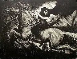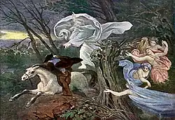 První setkání s postavou je velmi krátké. Chlapec ji z koně jen mžikem oka zahlédne a dostane strach. Po otázce jeho otce, proč má tak ustrašený výraz, odpoví, že někoho viděl a že má strach. Otec na to v klidu řekne, že to byl jen cár mlhy, že je vše v pořádku.