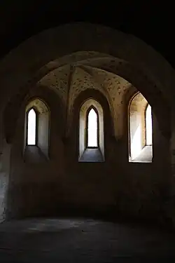Ustoupení klenebního hřebínku vytváří výrazný prostorový prvek -
