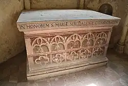 Z pozdější doby je oltářní mensa s malovanými ornamenty. Jsou na ní zobrazeny kružby gotických oken a jeptišky, a na přední straně oltářní desky je vytesán nápis, zasvěcující horní kapli svaté Máří Magdaléně. Podlahu přízemku ještě do nedávné[kdy?] doby pokrývaly původní keramické dlaždice, složené do mozaiky. Taková dlažba byla použita i v dalších cisterciáckých klášterech v českých zemích, např. v Hradišti nad Jizerou, v Nepomuku a na Velehradě.