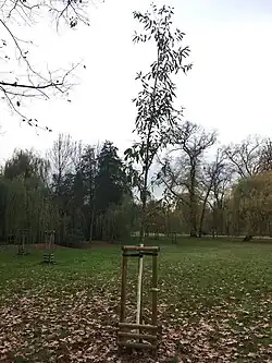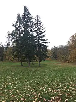 Nachází se zde množství exotických dřevin, včetně šlechtěných okrasných forem, z jehličnanů například tisovec dvouřadý (Taxodium distichum)a pamodřín Kaempferův (Pseudolarix kaempferi). Také tu nalezneme mnoho kultivarů buků, dubů – např. Dub dvoubarevný (quercus bicolor), jasanů a dalších druhů stromů.[18]
