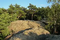 Z několika míst na pískovcových blocích se nad stromy otevírají částečné výhledy na okolní krajinu.