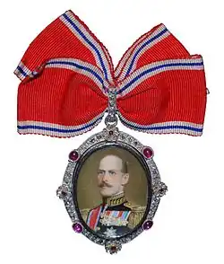 - ↑ a b Tom Bergroth: «Royal Portrait Badges», i Guy Stair Sainty og Rafal Heydel-Mankoo: World Orders of Knighthood and Merit, første bind, Buckingham: Burke's Peerage, 2006, s. 829