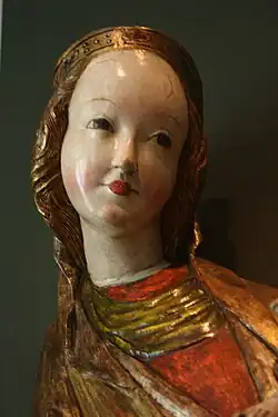 První písemná zmínka o soše se datuje k roku 1607, další k roku 1766. Původně byla součástí hlavního oltáře, později umístěna v předsíni a nakonec pro napadení červotočem uschována v podkroví. Svrchní nátěr se opakovaně odlupoval a byl často obnovován. Za války ji v letech 1942–1943 odborně restauroval a opatřil novým nátěrem jistý Němec jménem Kneisel.