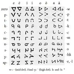 | Písmo | Latinka, kríjská varianta slabičného písma kanadských domorodců |