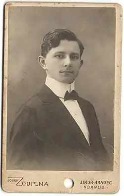 - 1905–1911 gymnázium v Jindřichově Hradci (13. července 1911 maturoval s vyznamenáním)