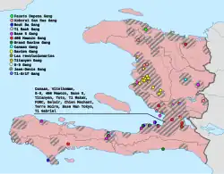 Od roku 2017 do roku 2021, kdy haitské politické vedení uvázlo na mrtvém bodě, byla veřejná správa prakticky nefunkční kvůli nedostatku financí a soudní systém se ocitl v troskách, gangy se zmocnily politické moci prostřednictvím spolupracujících politiků a ekonomické kontroly prostřednictvím financování ze strany podnikatelské elity, vybíráním výpalného, únosy a vraždami.