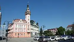 Hlavní náměstí se spořitelnou a radnicí -