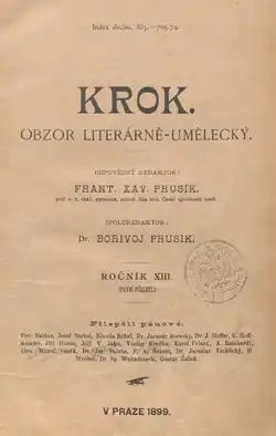 - Krok (3) byl český obecně vzdělávací časopis, věnovaný veškerým potřebám středního školstva, který svým názvem záměrně navázal na předchozí časopis vědecký. Vycházel v Praze v letech 1877–1899. Vydával ho profesor Akademického gymnázia František Xaver Prusík, články přispívalo šest středoškolských profesorů: Václav Emanuel Mourek, Bohumil Bauše, Petr Durdík, Jan Hulakovský, Jan Slavík a Josef Škoda. Tiskl František Šimáček,