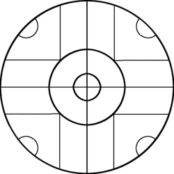 Nejvzdálenější zónou je Cross zone. Když se hráč trefí odtud, získává čtyři body (osm pokud se trefí skrz kruh). Další zónou je Flex zone kde hráč za skórování získává tři body (šest skrz kruh). Následuje Wedge zone, kde se nesmí hrát rukama. Za trefu se získávají 2 body (4 skrz kruh). Nejbližší je Goal zone, kde se získává jeden bod (dva skrz kruh).