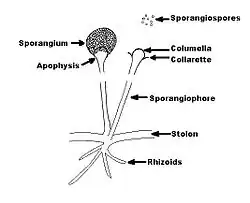 Asexuální rozmnožování je zajištěno pomocí sporangiospor.[1]