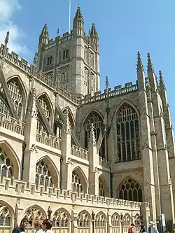 Zvláštností v anglické pozdní gotice je perpendikulární styl – kružba vytvořena pouze z spojených okenních prutů a zdůrazňující vertikálnost. V Bathském opatství z 16. století.