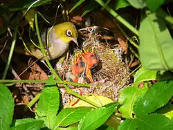 - ↑ a b TerraNature | New Zealand ecology - Fruit-eating birds, silvereye, Zosterops lateralis. terranature.org [online]. [cit. 2022-03-02]. Dostupné online. (anglicky)