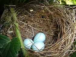 Na Novém Zélandu dochází ke kladení vajec cca od září do února,[10] v teplejší Austrálii se začíná s kladením již v srpnu.[9] Samice klade 2–5, nejčastěji 3 modré či modrozelené vejce oválného tvaru o rozměrech 17×13 mm ve 24h intervalech.[10] Inkubují samec i samice po dobu 10–13 dní. Mláďata se rodí se zavřenýma očima, a až na malý chomáč peří na hlavě jsou zcela holá. Ptáčata vykrmují oba rodiče. Po 4 dnech se mláďatům otevírají oči a v 10 dnech už jsou opeřená. V 9–11 dnech opouští hnízdo.[5]