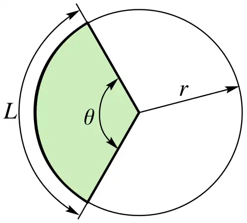 - Délka oblouku příslušícího úhlu θ (v radiánech):