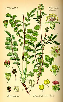 - ↑ a b c Sanguisorba minor [online]. US Forest Service, Washington, D.C., USA [cit. 2015-12-10]. Dostupné online. (anglicky)