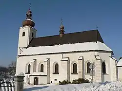 Kostel sv. Vavřince v Sobotíně. Zde žebračka Marina Schuchová znesvětila hostii a nechtěně tak odstartovala čarodějnické procesy.