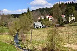Drobný průmysl přesto nedokázal nabídnout dostatek pracovních míst, a lidé proto pracovali v Sasku i v první polovině dvacátého století. Ze Saska naopak přijížděli návštěvníci, které lákala okolní příroda Krušných hor. Ve čtyřicátých letech dvacátého století ve vesnici fungovaly čtyři hostince, tři obchody s potravinami, tři pekaři, řezník, cukrárna, povoznictví, tři trafiky, obchod s uhlím, dva holiči, tři ševci a chomutovské svépomocné družstvo. Řemeslo provozovali také zedník, truhlář a klempíř.[9] Vysídlení německého obyvatelstva po druhé světové válce způsobilo výrazný pokles počtu obyvatel, v jehož důsledku byla zavřena elektrárna v budově bývalé drátovny, továrna na krajky a záclony a roku 1953 také pila. Odliv obyvatel se zpomalil v období 1954–1966 v souvislosti se zřízením posádky pohraniční stráže. Přesto bylo v letech 1959–1960 zbořeno přibližně sedmdesát nevyužívaných domů.[10]