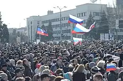 Na oslavách dne vítězství 9. května 2014 se v krymském Sevastopolu sešlo okolo stovky tisíc lidí, mávali ruskými vlajkami a zpívali mimo jiné ruskou hymnu.[38]
